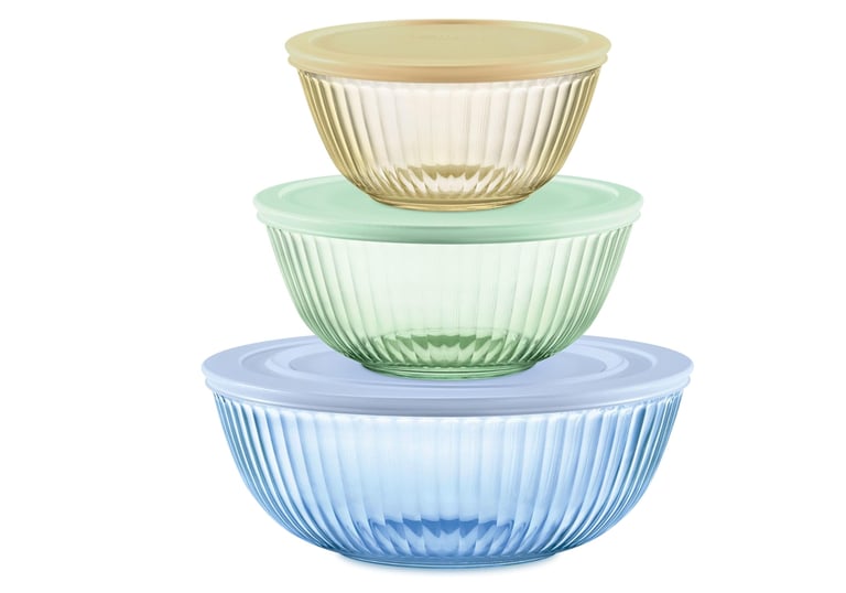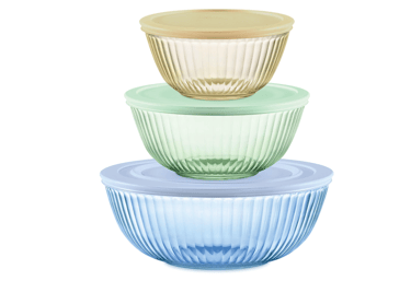 These mixing bowls are an attractive addition to anybodys kitchen - but for a baker they can double as perfect bowls for mixing batters, whisking egg whites, proofing bread doughs, and storing mise en place. The lids are a no-brainer!