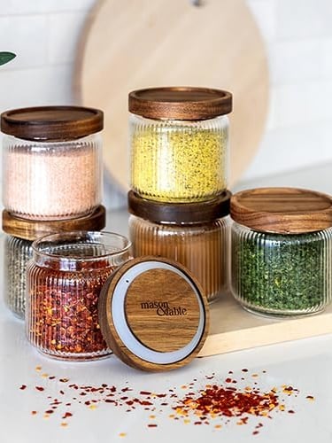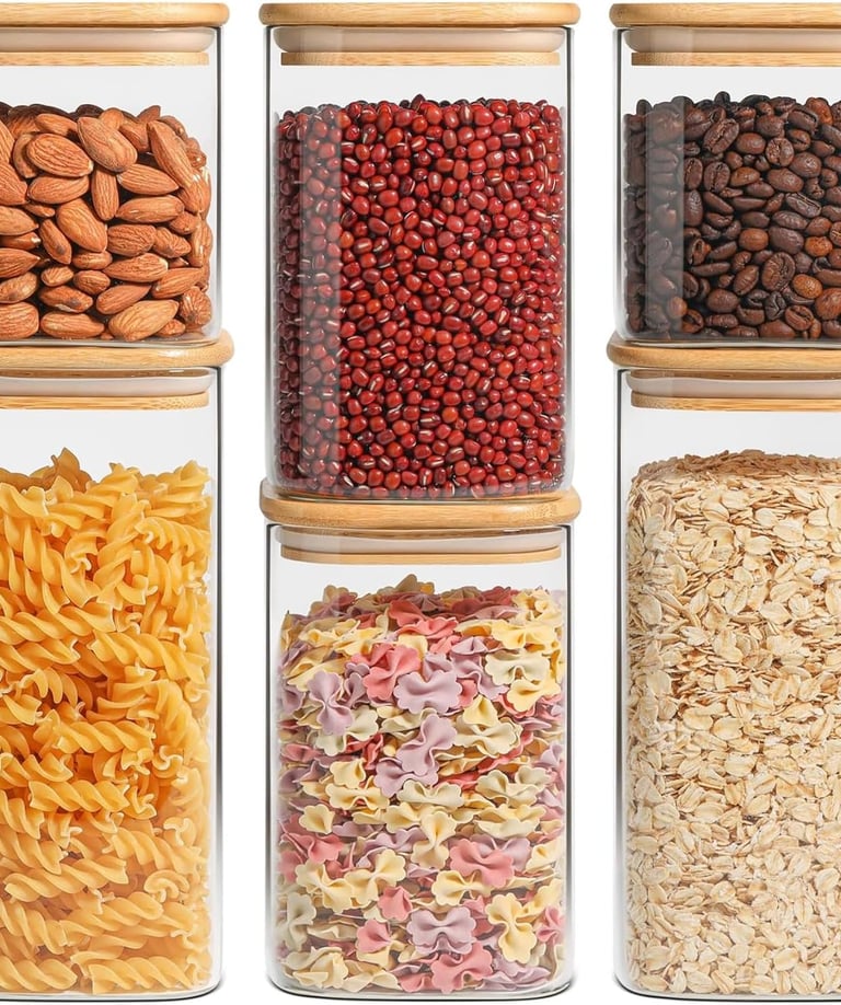 6-Piece Set, Stackable with Wood Airtight Lids for Spices, Coffee, Sugar