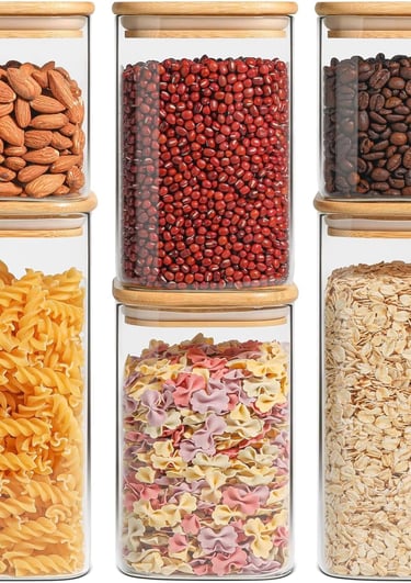 6-Piece Set with Bamboo Lid, Multi-Use Pantry